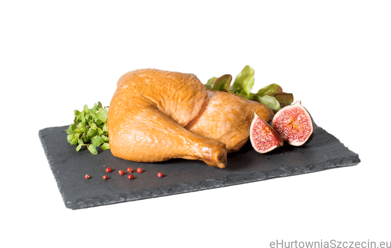 Ćwiartka z kurcząt wędzona. Soczyste mięso drobiowe poddane obróbce wędzenia. Delikatną strukturę mięsa i subtelny smak uzyskuje się przez stosowanie oryginalnych metod. Na 100 g wyrobu gotowego zużyto 101 g Ćwiartki tylnej z kurcząt.