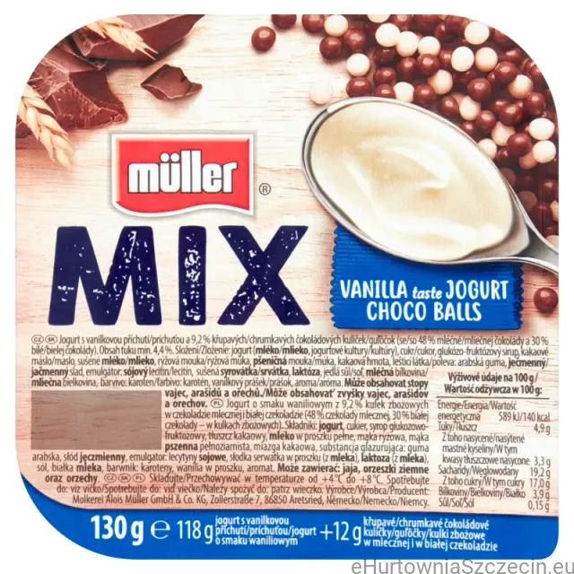 MULLER JOGURT MIX O SMAKU WANILIOWYM Z KULKAMI CZEKOLADOWYMI 130G