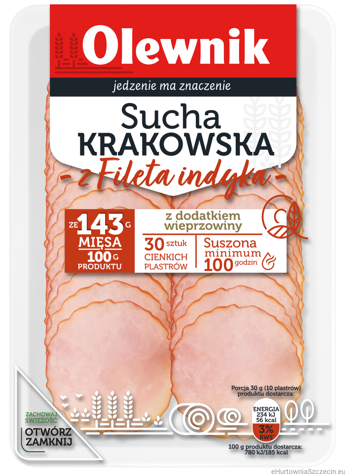 OLEWNIK KIEŁBASA KRAKOWSKA SUCHA Z FILETA INDYKA PLASTRY 90G