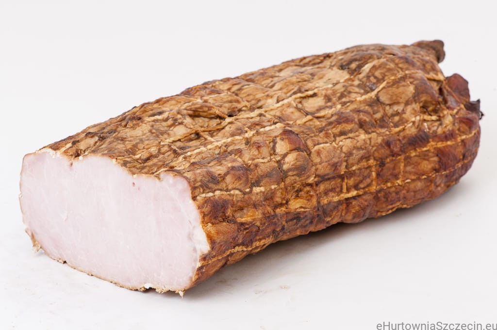 Składniki: schab wieprzowy 89%, białko wieprzowe, cukier, przyprawy naturalne, sól, stabilizator (difosforan disodowy), stabilizator (polifosforan sodu), stabilizator (trifosforan pentasodowy), substancja konserwująca (azotyn sodu), substancja zagęszczająca (karagen), woda.