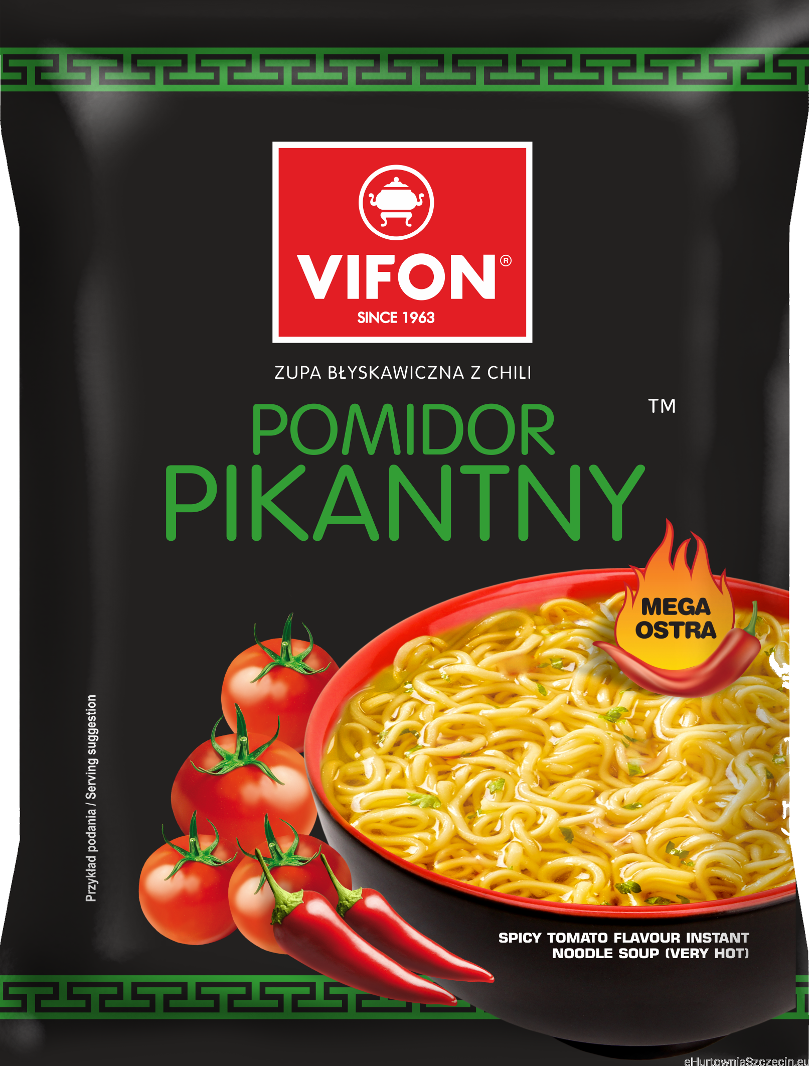 Składniki: kluski (86,4%): mąka pszenna, tłuszcz palmowy, tapioka, sól, skrobia, cukier, stabilizatory: trifosforany, guma guar; substancje spulchniające: węglany potasu, węglany sodu; kurkuma; dodatki smakowe (13,6%): pomidor w proszku (40,6%), sól, cukier, wzmacniacze smaku: glutaminian monosodowy, guanylan disodowy, inozynian disodowy; ekstrakt drożdżowy w proszku, aromat, maltodekstryna, skrobia z tapioki, chili (2,1%), regulator kwasowości: kwas cytrynowy; suszone warzywa w zmiennych proporcjach (0,6%): szczypiorek, seler; substancja przeciwzbrylająca: E 551; hydrolizat białka sojowego, czosnek (0,5%), ekstrakt z chili (0,32%), burak w proszku, barwnik: ekstrakt z papryki.